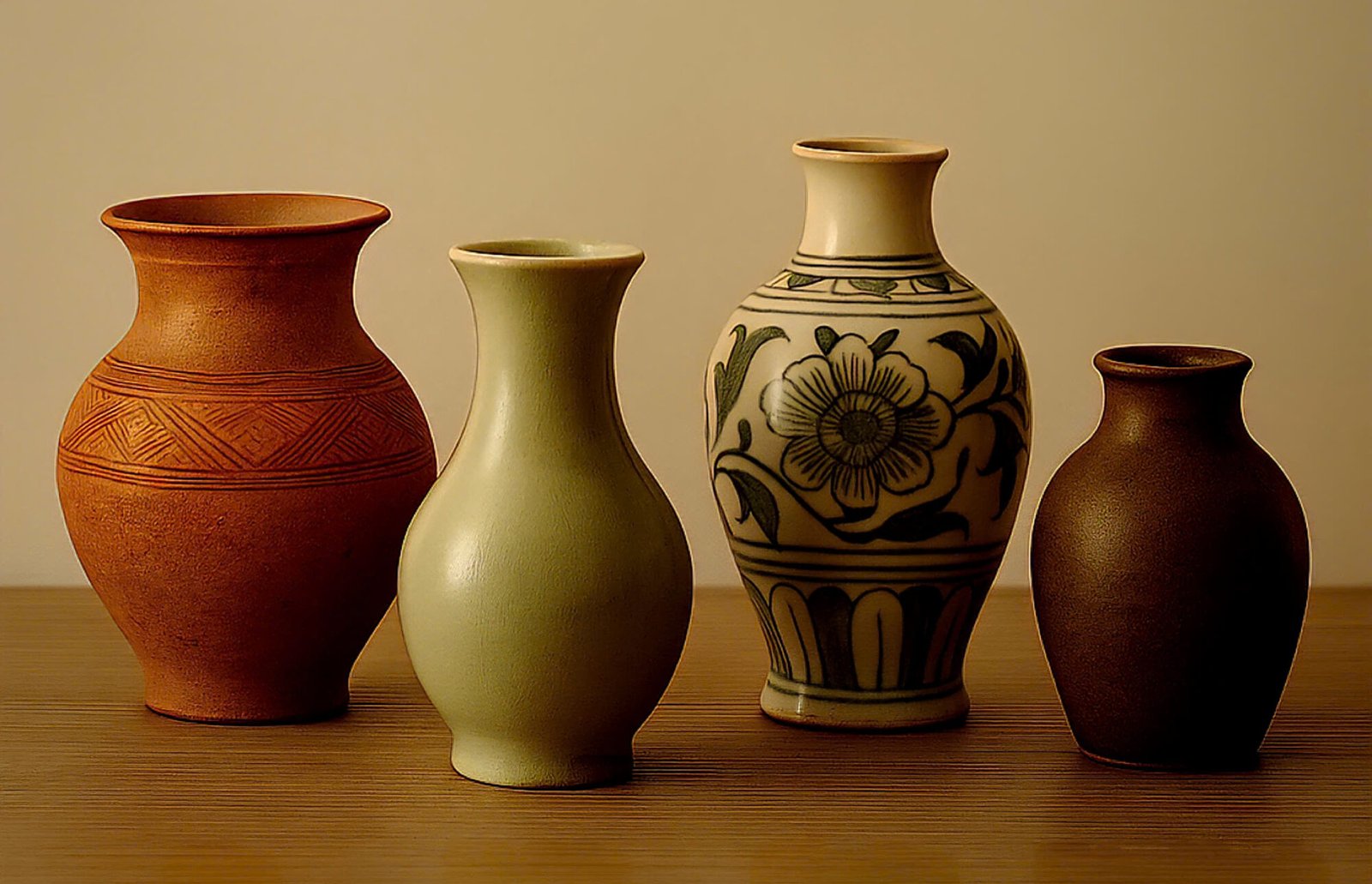 Những chiếc bình gốm Phù Lãng mang trên mình sắc nâu trầm, đường vân tự nhiên của đất nung qua lửa. Chúng vốn sinh ra để đứng lặng, giữ lại cho mình một phần ký ức của đất, của lửa, của đôi tay người thợ. Trong sự tĩnh lặng ấy, bình gốm có một vẻ đẹp riêng – không khoa trương, không ồn ào, mà hiền lành như mạch đất quê.
