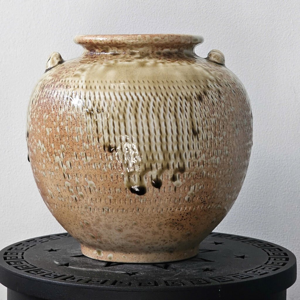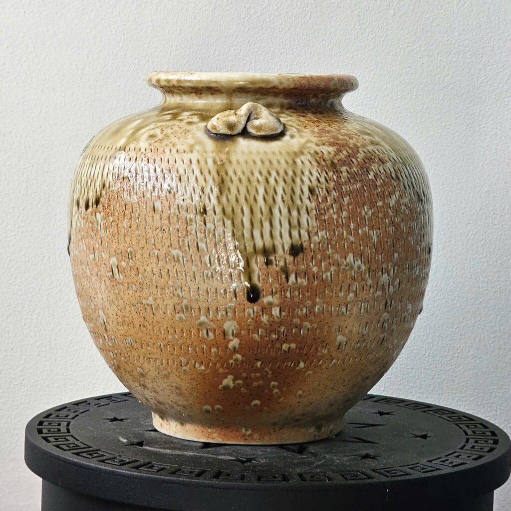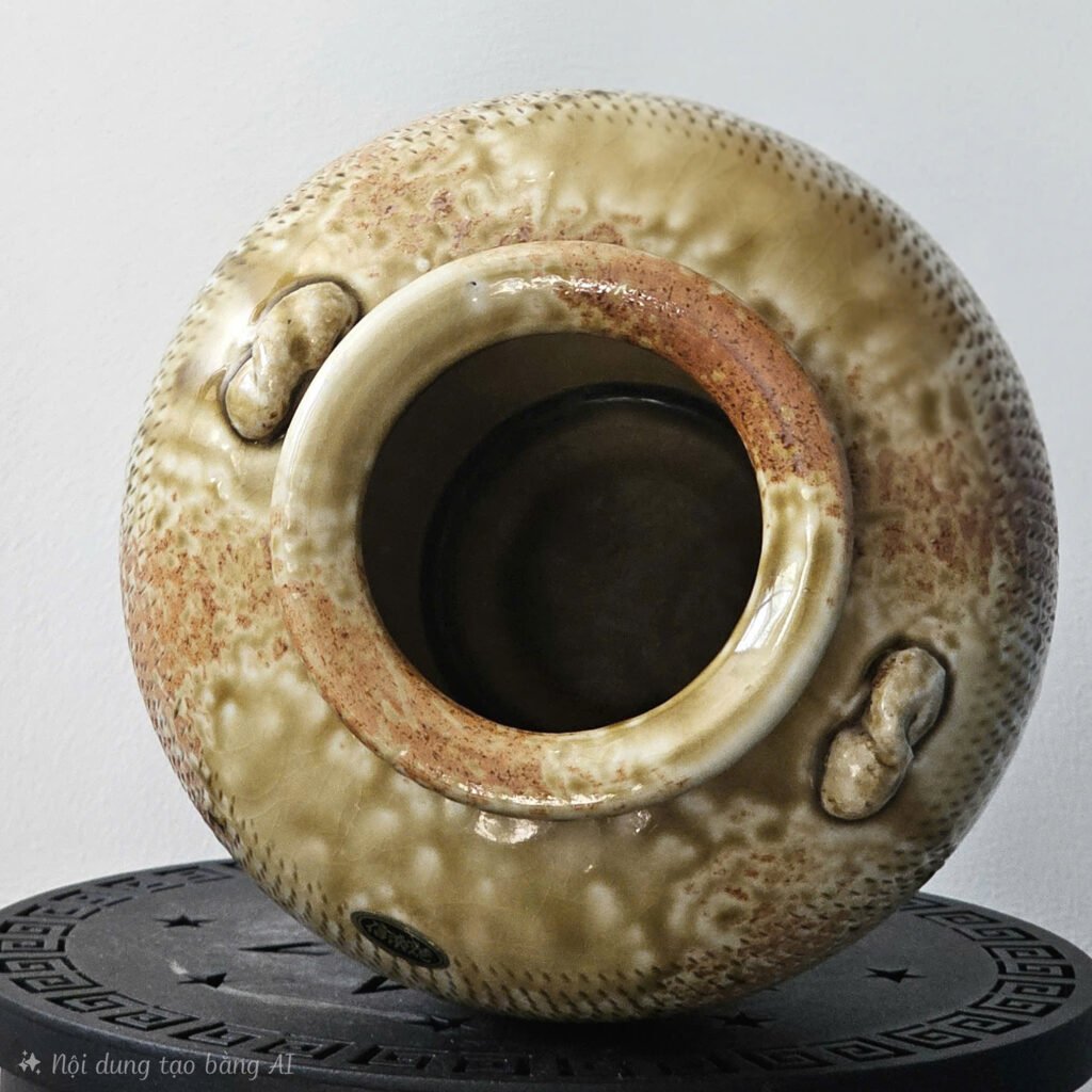 Hai núm gốm nhỏ hai bên vai —chi tiết mộc mạc, từng có mặt trên những bình gốm cổ dùng để buộc dây treo.