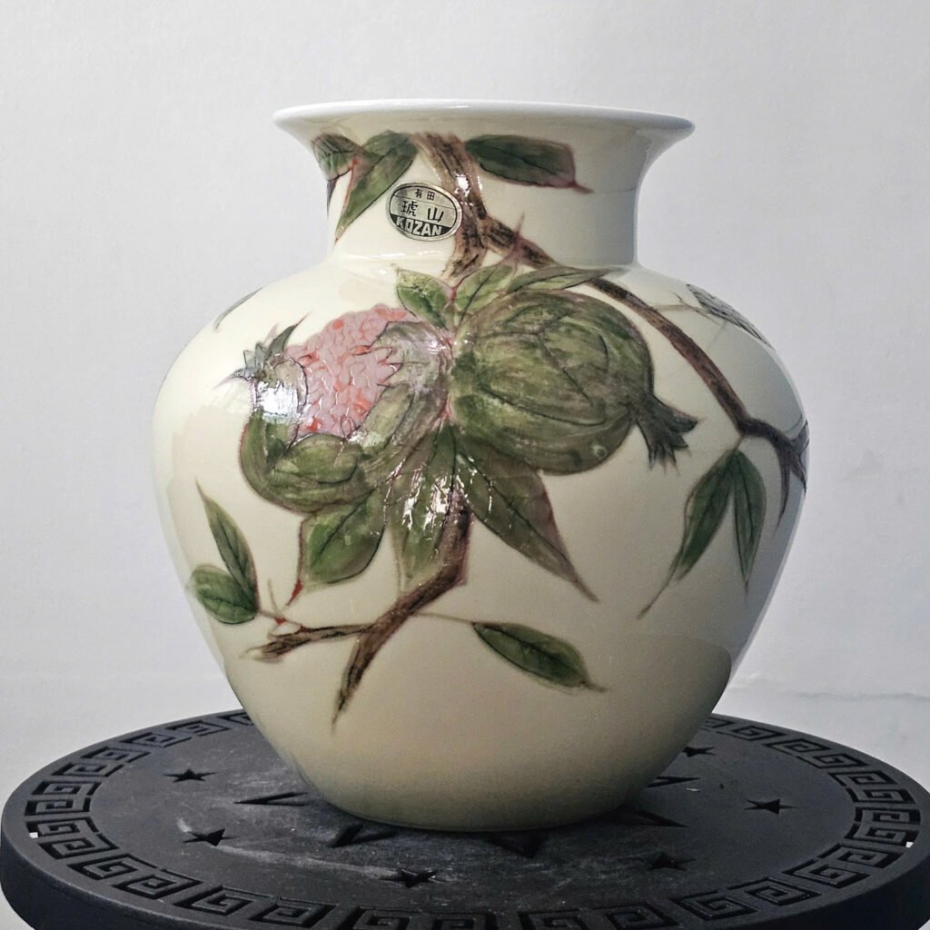 Cao 40cm, đường kính miệng 5,5cm, đáy 13cm, chu vi vai 61cm – chiếc bình gốm này là minh chứng cho kỹ nghệ sứ tinh tế của lò Fukagawa Seiji, một trong những dòng gốm quý của Nhật Bản.