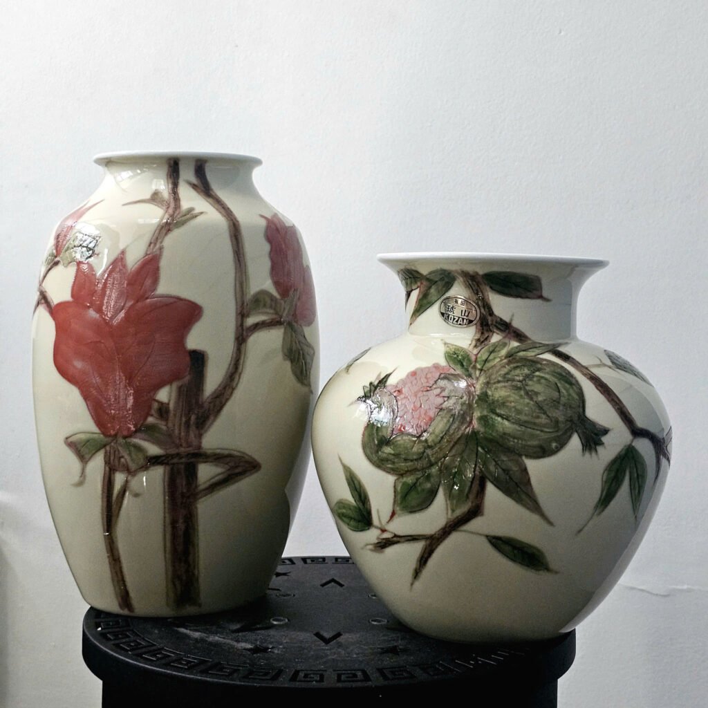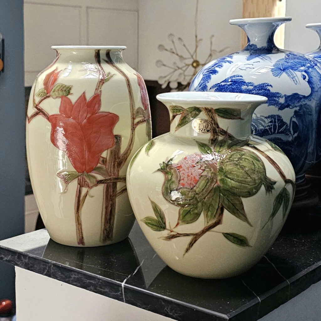 Cặp bình này thuộc dòng sưu tầm cao cấp – sự xuất hiện của chiếc thứ hai hoàn thiện vẻ đẹp song hành, giúp bộ đôi đạt đến độ hài hòa hiếm có giữa hình – sắc – tâm.