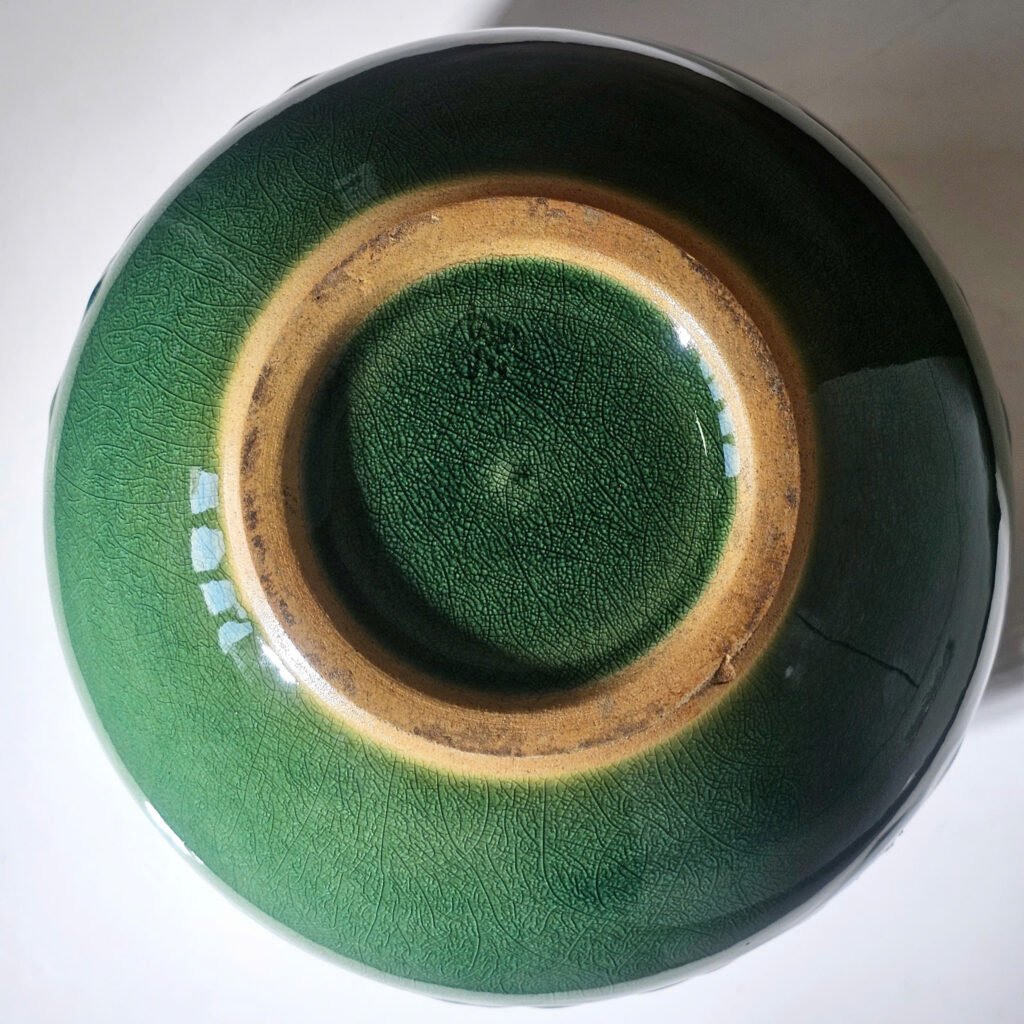 Toàn thân bình được phủ lớp men rạn xanh ngọc bích trầm và sâu.