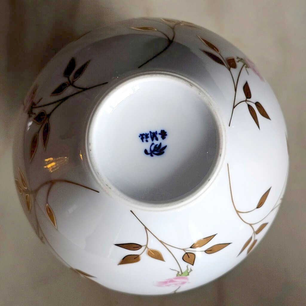 Chất liệu: Gốm sứ men trắng ngà, vẽ tay hoa hồng và lá dát vàng