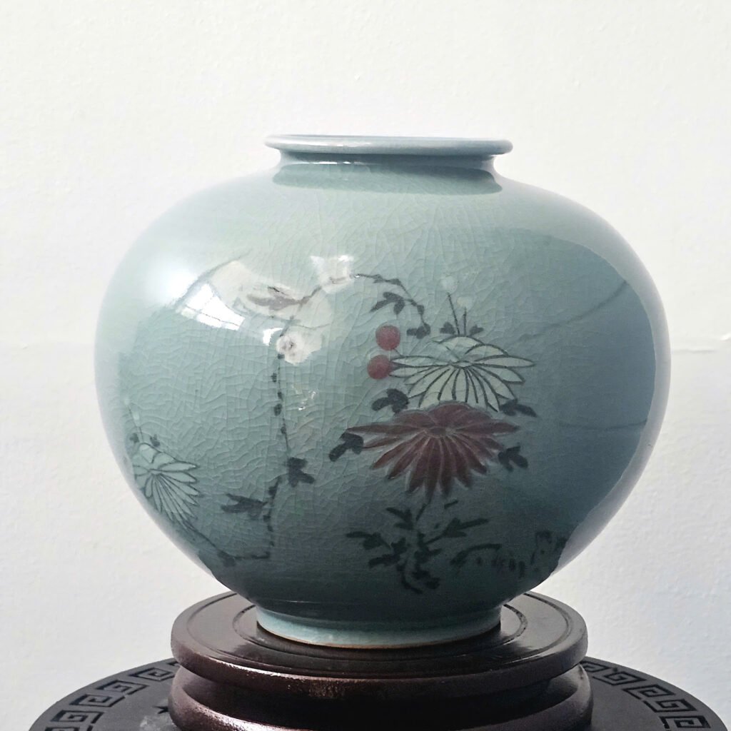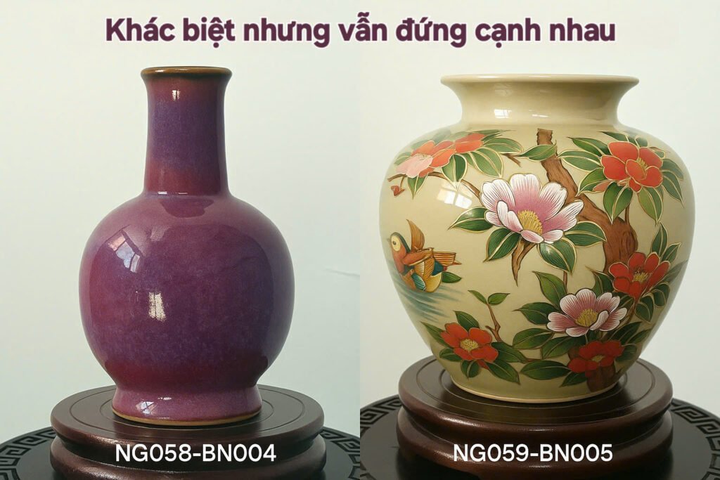 - Hoặc trưng bày trong tủ kính, cùng với các món gốm lam khác để tạo nên một bộ sưu tập đồng điệu.