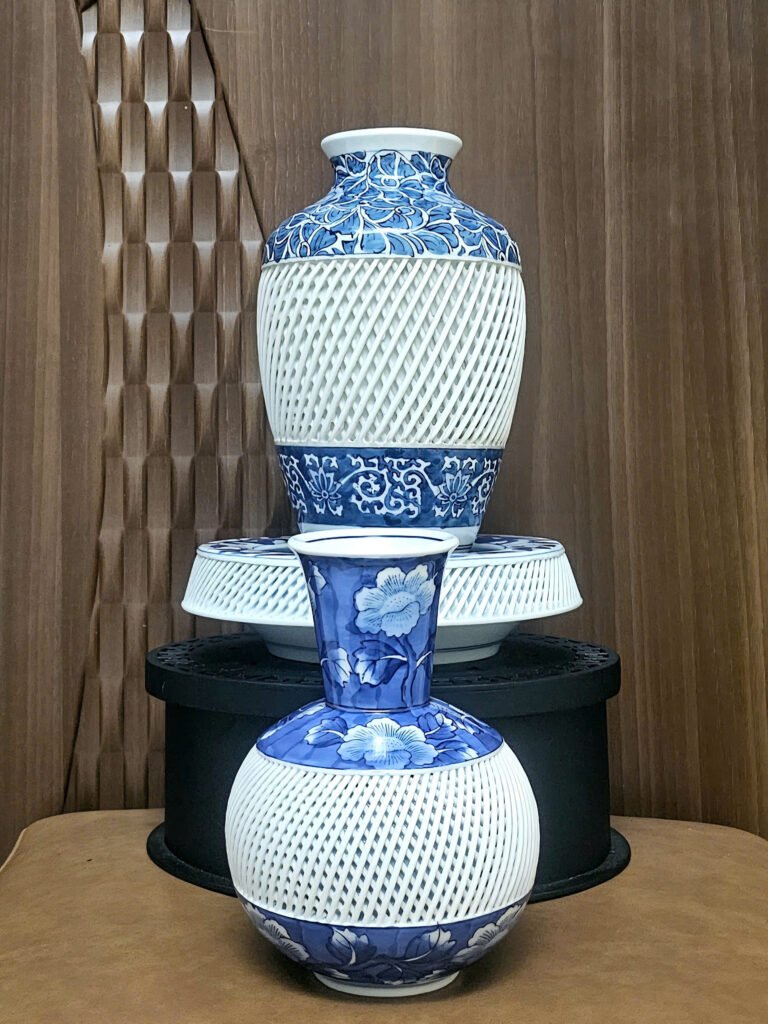 Một chiếc bình nghiêng về sự giản lược, lấy màu men làm chủ; một chiếc bình chọn sự rực rỡ, dùng họa tiết để kể chuyện. Hai phong cách trái ngược, nhưng đều cho thấy sự tinh tế của bàn tay Nhật Bản và cái duyên hiếm có của men gốm.